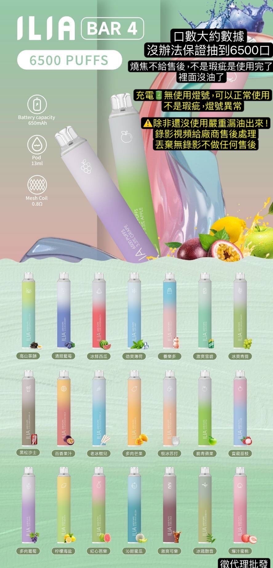 【ILIA哩亞】四代Bar4拋棄式電子煙6500口-正版 ILIA BAR 4 哩啞 6500口 一次性電子煙
