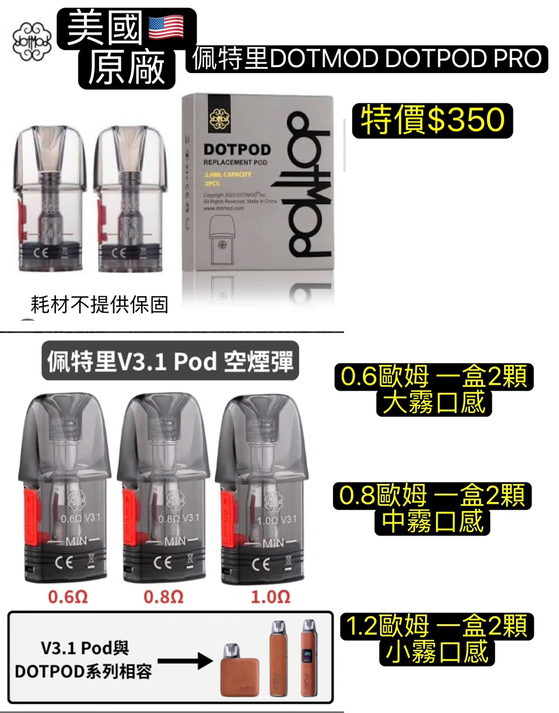 美國佩特里 Dotmod DotPod Pro主機套裝Dotmod DotPo空彈Dotmod耗材空彈佩特里空彈佩特里pro主機佩特里pro空彈佩特里 Dotmod成品倉