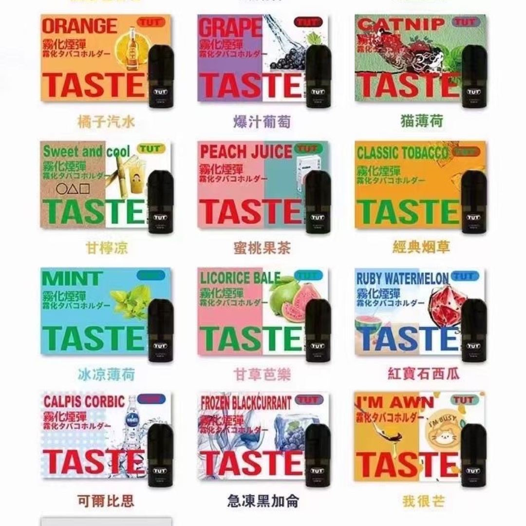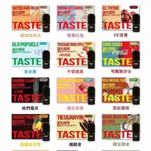 黑金色, 灰色, 白色, 漸變紫, 爆珠哈密瓜, 莓事打泡, CC百香, 老冰棍, 千雪蘋果, 可樂尬沙士, 哈們魔爪, 櫻花草莓, 貴妃荔枝, 鳳梨尬百香, 鐵觀音, 綠豆挫冰, 橘子汽水, 爆汁葡萄, 貓薄荷, 甘檸涼, 蜜桃果茶, 經典煙草, 冰涼薄荷, 甘草芭樂, 紅寶石西瓜, 可爾必思, 急凍黑加侖, 我很芒