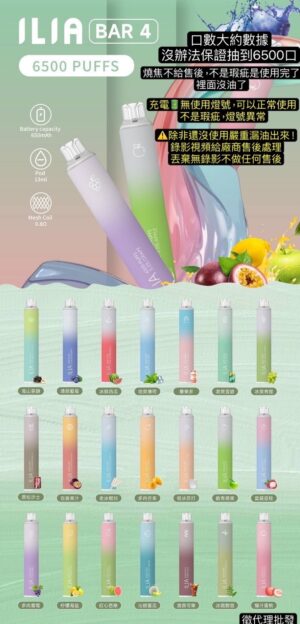 ILIA哩亞四代Bar4拋棄式電子煙 6500口