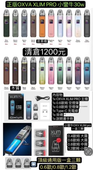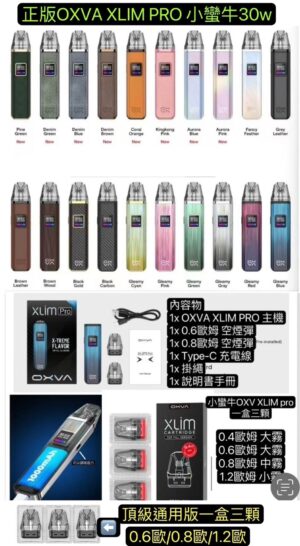 Oxva Xlim Pro pod套件是一款非常時尚的設備,共有8種顏色可供選擇。