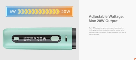 高容量電池: 配備1500mAh電池,提供持久的電池續航時間,讓您可以長時間享受電子煙體驗。 0.69英寸螢幕: 配備了清晰的0.69英寸螢幕,讓您可以輕鬆查看電池電量、功率和其他重要資訊。 大容量煙彈: 煙彈容量為3.5ml,足以容納大量的電子煙液, 減少了頻繁加裝的需求,提供更持久的使用體驗。