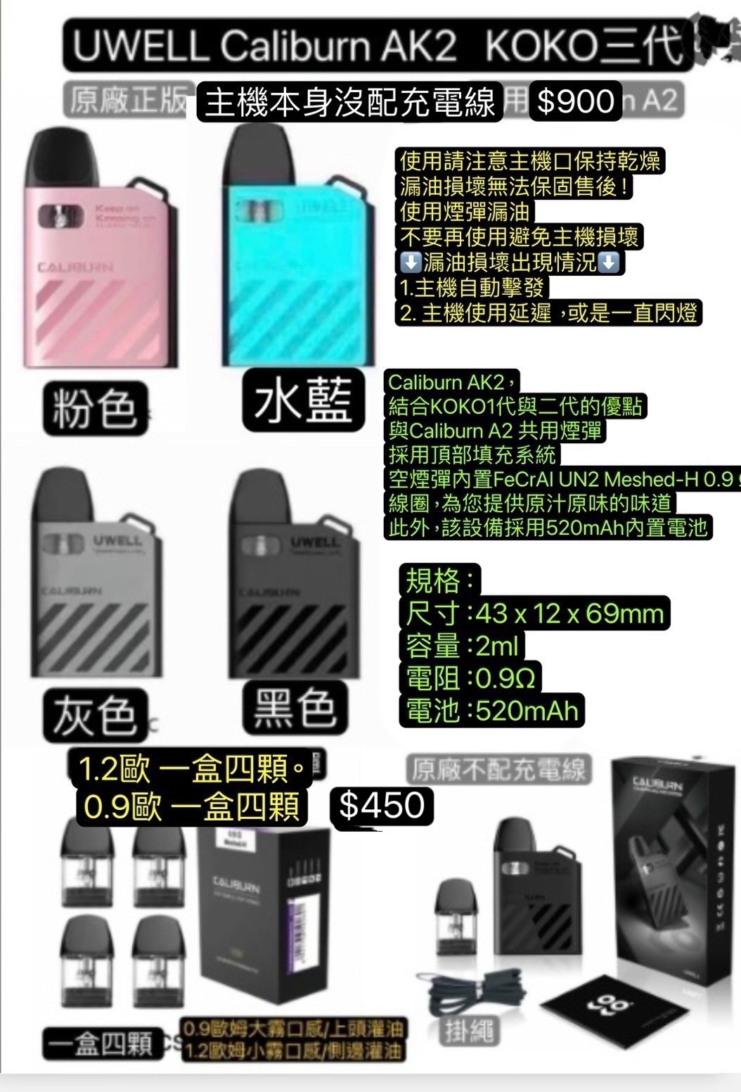 Uwell Caliburn AK2方塊KOKO咖哩棒A2主機A2空彈0.9A2耗材1.2咖哩棒A2耗材咖哩棒AK2主機KOKO耗材KOKO空彈