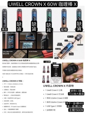 UWELL CROWN X 60W 咖哩棒 X咖哩棒UWELL CROWN X空彈UWELL CROWN X 60W成品芯